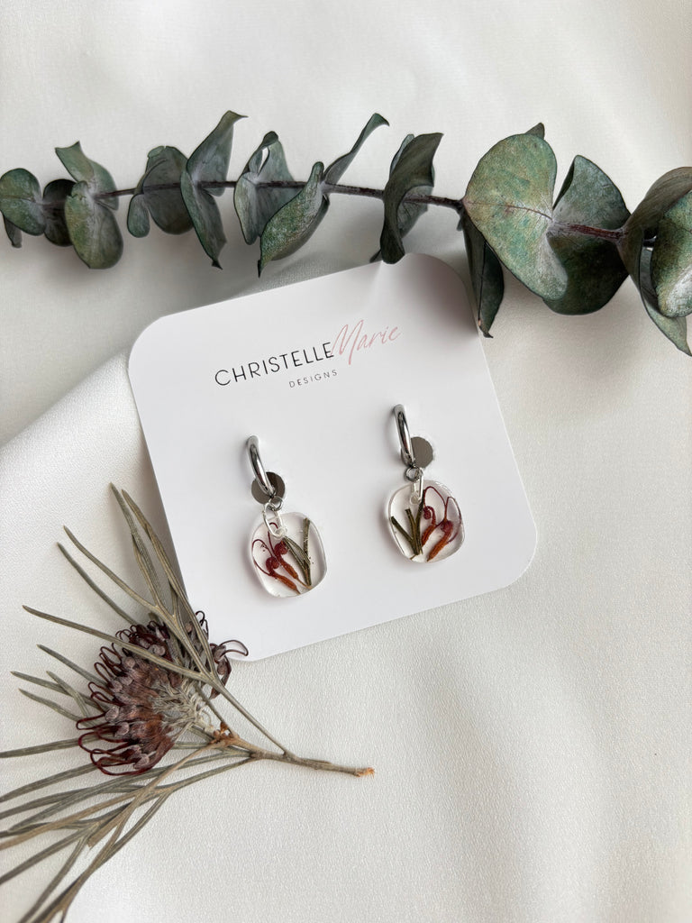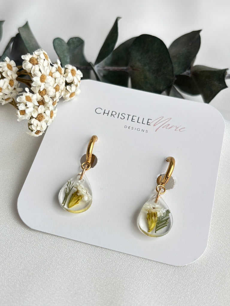 Beautiful handcrafted resin dangles & necklace gift with real flowers and plant material embedded in the resin