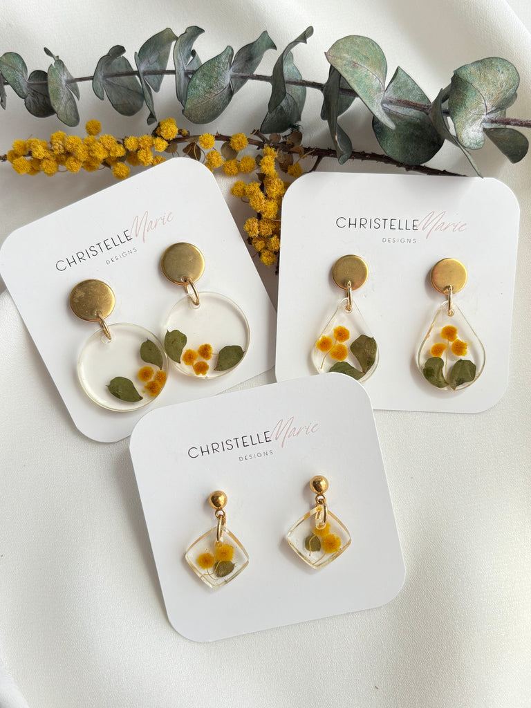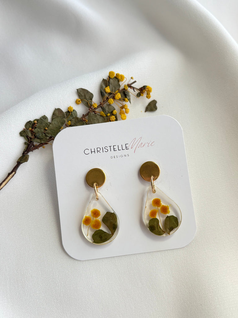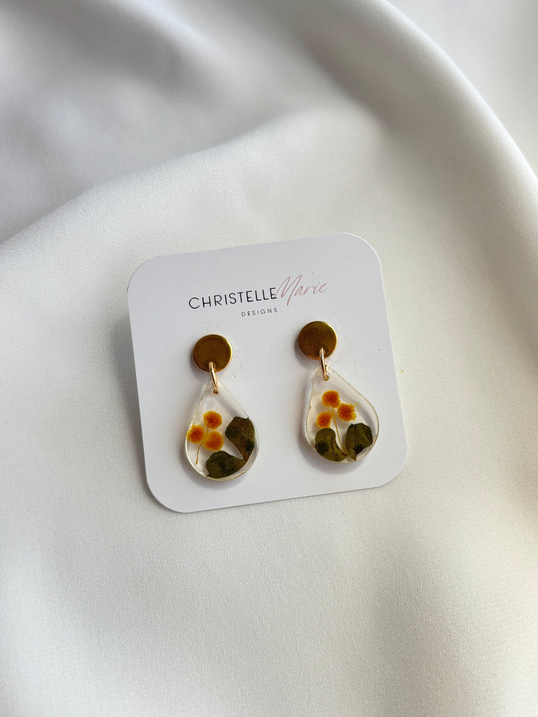 Small Wattle tear drop earrings with gold studs