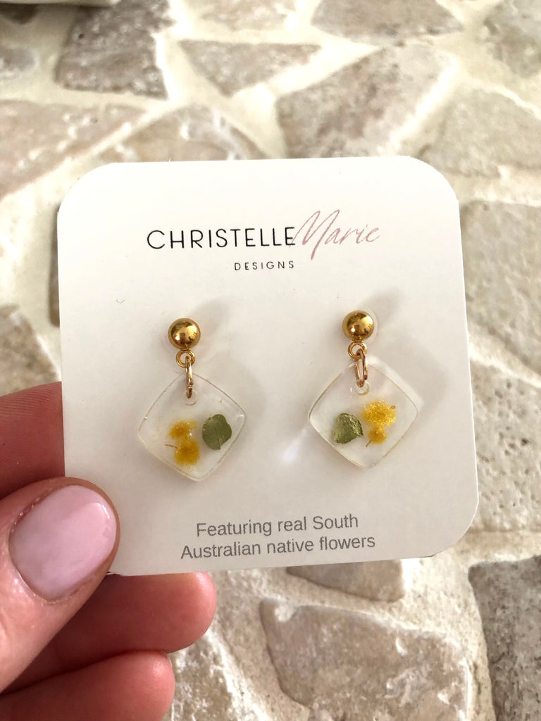 Beautiful handcrafted resin dangles & necklace gift with real flowers and plant material embedded in the resin